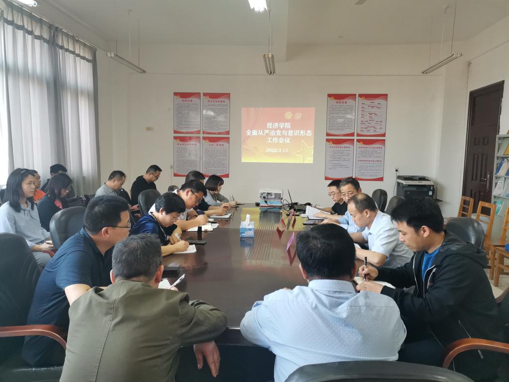 3月15日下午,jinnianhui金年会诚信至上于义丰楼619会议室召开全面从严治党和意识形态工作专题会议,对学院如何落实从严治党和加强意识形态工作做了具体部署。会议由党委书记漆晗东主持,学院党委委员、各科室负责人、各支部书记及全体行政人员出席会议。