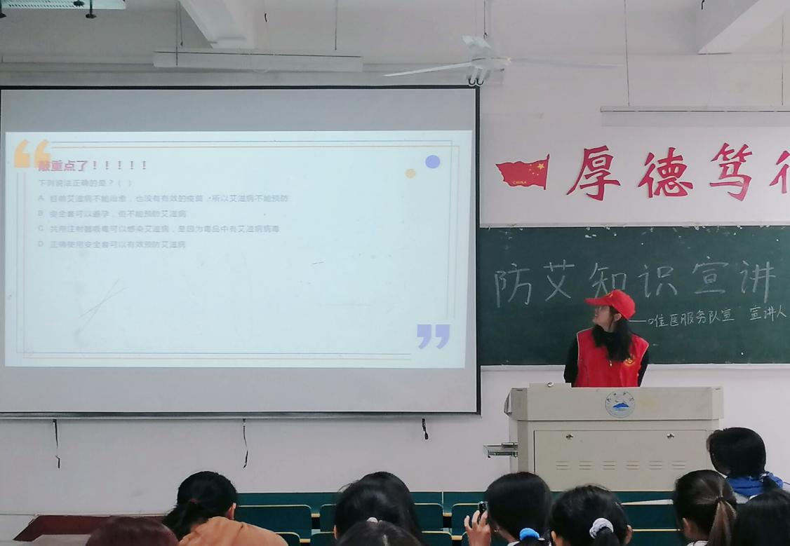 此次活动以“生命至上、终结艾滋、健康平等”为主题。主讲人结合PPT向大家讲解了艾滋病的由来,阐述了其传播手段和预防手段。同时,从大量数据出发,分析了高死亡率的原因。接着,同学们一同观看了艾滋病相关的纪录片,理解了生命的可贵。互动环节中,现场气氛热烈,同学们积极参与。