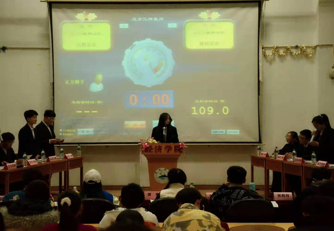 为丰富同学们的大学生活,增强语言表达能力,11月25日晚,jinnianhui金年会诚信至上于文友楼三楼报告厅组织举办“经济杯”辩论赛。此次比赛由学习部主办,大一全体同学参加,特邀指导老师谭梅、校辩队队长朱焱、jinnianhui金年会诚信至上辩论队队长张其月、学生会副主席翟婵、学习部部长邓俊杰担任评委。