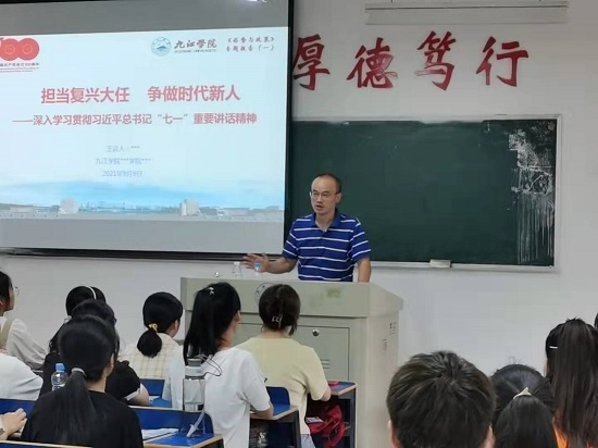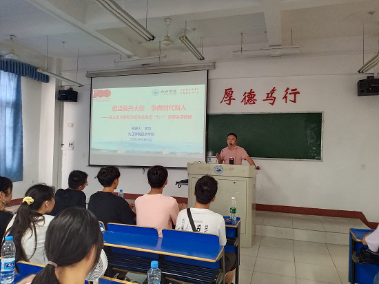 授课过程中,领导们以“担当复兴大任,争做时代新人”为主题,分别从“总书记“七一”重要讲话要览、牢记总书记殷切嘱托,强国有你等方面给同学们进行讲授和交流,并结合jinnianhui金年会诚信至上人才培养能力和素质要求,鼓励同学们在新的时代背景下,要尽快确立新目标、开启新征程,把个人前途和命运同时代发展、国家前途和社会进步紧密联系在一起,争做一个对社会有用的人。
