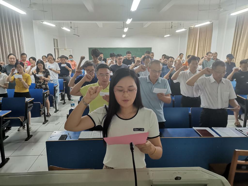 会上,漆书记提出殷切的希望,希望教师们能从榜样的先进事迹中汲取砥砺奋进的力量,在工作中以实际行动践行誓词,做“有理想信念、有道德情操、有扎实知识、有仁爱之心”的好老师,为学院的发展,为教育事业发展贡献自己的力量。