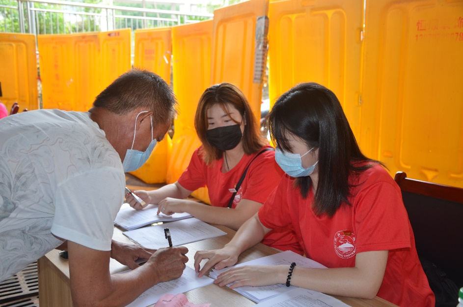 为做好疫情防控工作,努力推进新冠疫苗接种进度,2021年7月7日上午10时,在jinnianhui金年会诚信至上团委老师郭格格、熊志、陈曦的带领下,jinnian金年会圆梦“金”夏社会实践服务队联合共青城市甘露镇桔园社区支部委员会,开展了新冠疫苗接种志愿服务工作。