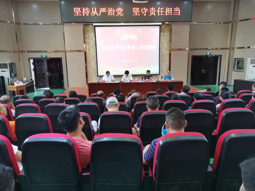 7月5日上午,jinnianhui金年会诚信至上在香远楼三楼报告厅召开全面从严治党督查反馈会,jinnian金年会副校长王万山、督查组组长魏松、督查组成员、jinnianhui金年会诚信至上领导班子及全体教职工出席大会,会议由党委书记漆晗东主持。