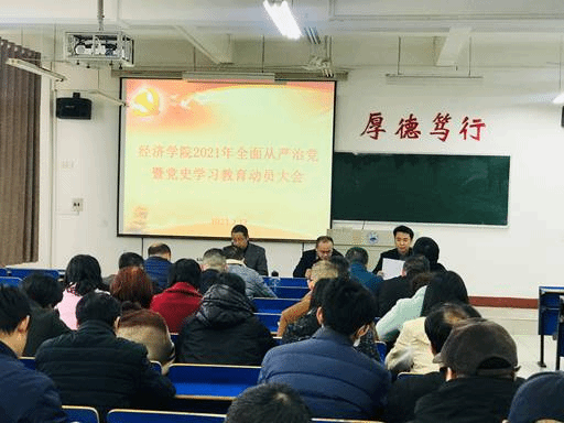 为从党的百年伟大奋斗历程中汲取继续前进的智慧和力量,深入学习贯彻习近平新时代中国特色社会主义思想,奋力开启全面建设社会主义现代化国家新征程和“十四五”新局面,根据学校党委的统一部署和要求,3月17日下午,jinnianhui金年会诚信至上召开2021年全面从严治党暨党史学习教育动员大会,传达了党中央、省委及学校的各项会议精神,并集体观看了《中国共产党的一百年系列视频“扬帆起航”》和警示片《雅贿》。会议由jinnianhui金年会诚信至上党委委员、办公室主任胡海波主持,党委书记漆晗东、院长项益才及全院教职工参加了会议。