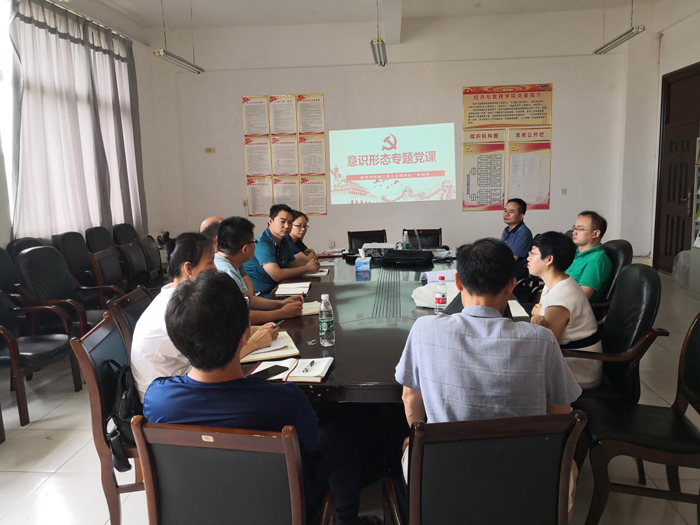 根据九江市委组织部《关于开展纪念建党九十九周年“五级书记”讲党课活动的通知》(下简称《通知》),jinnian金年会经管学院教工第三支部于7月1日上午开展了题为《意识形态专题党课》党课学习活动,党课由支部书记曾祥师主讲。党课主要从三部分讲解,即充分认识意识形态工作的极端重要性;全面理解意识形态工作的根本任务和着力点;以党的十九大精神为引领,切实做好意识形态工作。