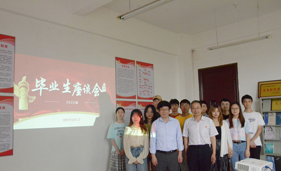 随后,王万山又来到义丰楼619与2022届毕业生代表开展座谈。座谈会上,王副校长认真听取毕业班同学提出的关于学习和生活上的建议和意见。在得知有同学考研失利准备再次备考后,他给予了肯定,王万山指出:人生没有那么一帆风顺,既然选择了考研这条路,就要做好规划,脚踏实地。最后,王万山对同学们提出了希望和要求:一是要学会做人做事,无论何时何地做人做事都要脚踏实地,谨言慎行;二是要学无止境,毕业后要继续加强学习,继续提升综合素养和本领;三是要常怀感恩之心,铭记大学美好时光,关心学校和学院发展。