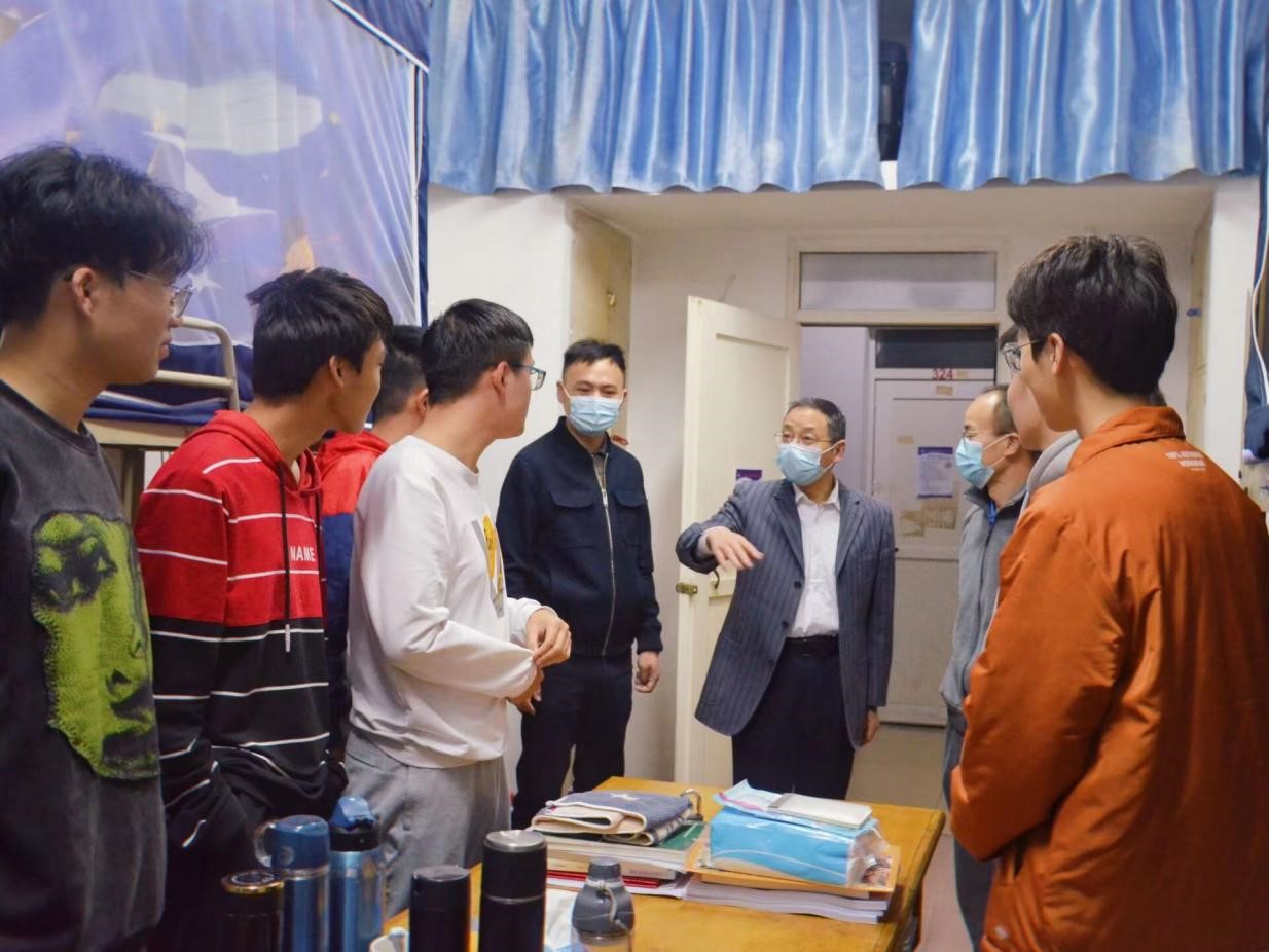 4月15日,jinnianhui金年会诚信至上党委书记漆晗东、院长项益才及辅导员到寝室看望学生,了解学生的生活状况、学习状态和疫情防控落实情况,倾听学生意见。漆书记叮嘱同学们严格遵守学校疫情防控的相关要求,做好个人防护,保持宿舍卫生勤通风。项院长提醒同学们在平常的生活中,注意财物安全、用电安全、人身安全,加强内务整理,合理安排时间,劳逸结合,加强专业知识的学习。