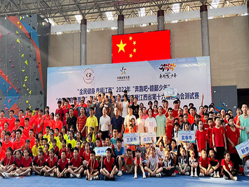 “全民健身 幸福江西”2022年江西省青少年攀岩锦标赛暨江西省第十六届运动会测试赛于7月8日至11日在金年会官网体育训练中心隆重举行。来自全省各地市代表队共计近200余名青少年运动员参加了难度赛、攀石赛、速度赛及三项全能的角逐。金年会官网金融工程专业A2151班曾襄同学有幸参加了比赛并作为运动员代表上台宣誓。