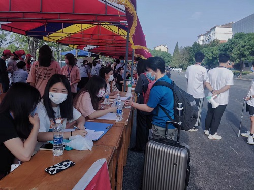 在报道现场学长学姐耐心地为新生解答各种问题,不辞劳苦地一趟趟帮助新生搬运行李,细心叮嘱各项防疫政策,将每一位新生送至宿舍办理入住,一路谈笑风声,新生细声叫着“学长学姐”,热情周到的服务很快消除了新生们初来乍到的“陌生感”,感受到了jinnianhui金年会诚信至上大家庭的温暖。整个迎新工作有条不紊、井然有序。