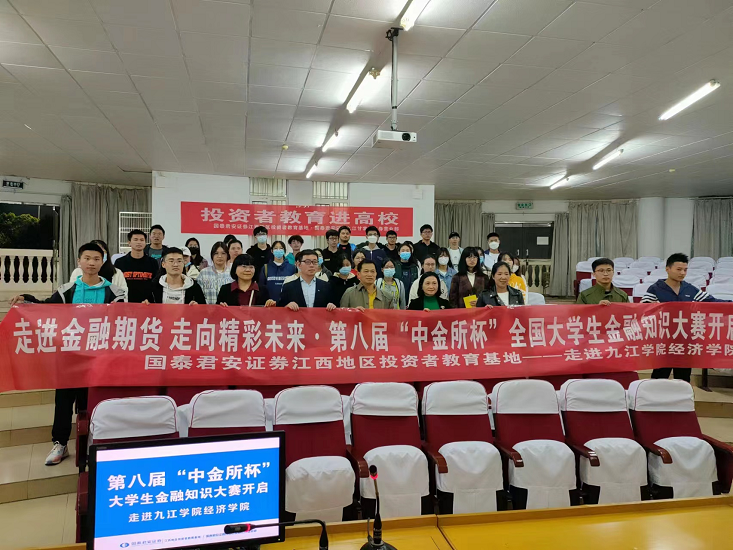 10月27日晚,jinnianhui金年会诚信至上金融学教研室在学校图书馆报名厅举办第八届“中金所杯”全国大学生金融知识大赛辅导讲座,这次活动也是国泰君安证券公司“投资者教育进高校”系列活动之一。金融学教研室主任李拔豪博士、国泰君安证券公司九江营业部总经理鄢嫣,以及来自金融学、金融工程专业学生约70人参加了此次活动。