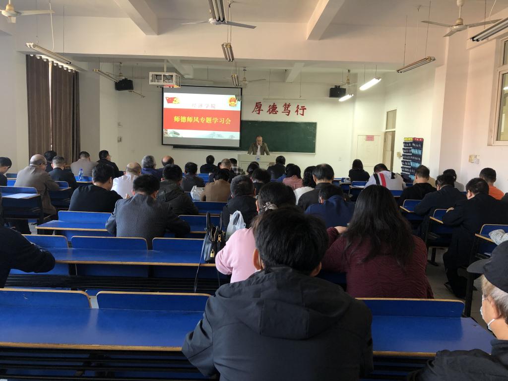 为进一步加强学院教师队伍师德师风建设,规范教师从教行为,强化教师职业道德,11月2日下午,金年会官网在义丰楼502召开师德师风专题学习会以及心理健康培训,院长项益才主持会议,学院领导班子成员和全体教师参会。
