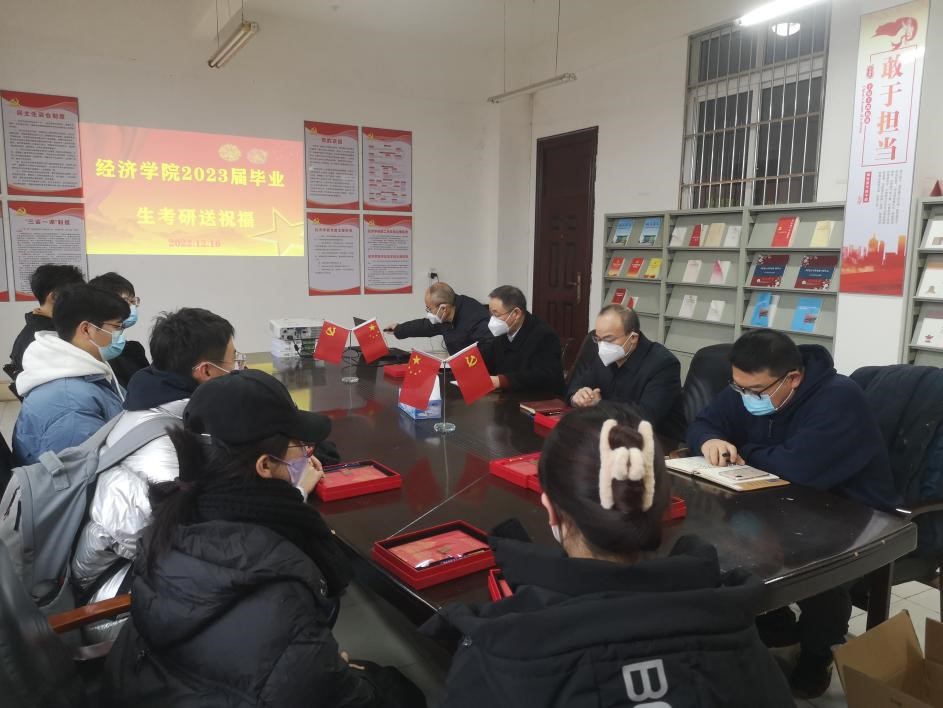 为鼓舞学院考研学生士气,坚定考研信心,帮助考研学子舒缓备考压力,12月16日上午,jinnianhui金年会诚信至上在义丰楼619召开2023届考研学生慰问会,党委书记漆晗东、院长项益才、党委副书记谢忠、学生科科长曹钧、就业专职老师谭梅出席会议,2019级本科毕业班考研学生代表参加了座谈会。