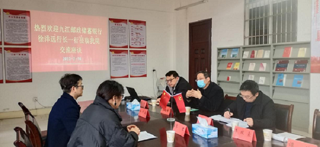 2月16日上午,中国邮政储蓄银行九江市分行党委书记、行长徐洋远,人力资源部总经理李君一行来院考察交流,学院党委书记漆晗东、副院长李华、金融学教研室主任李拔豪、学生科科长曹钧、就业专干谭梅参加座谈会。
