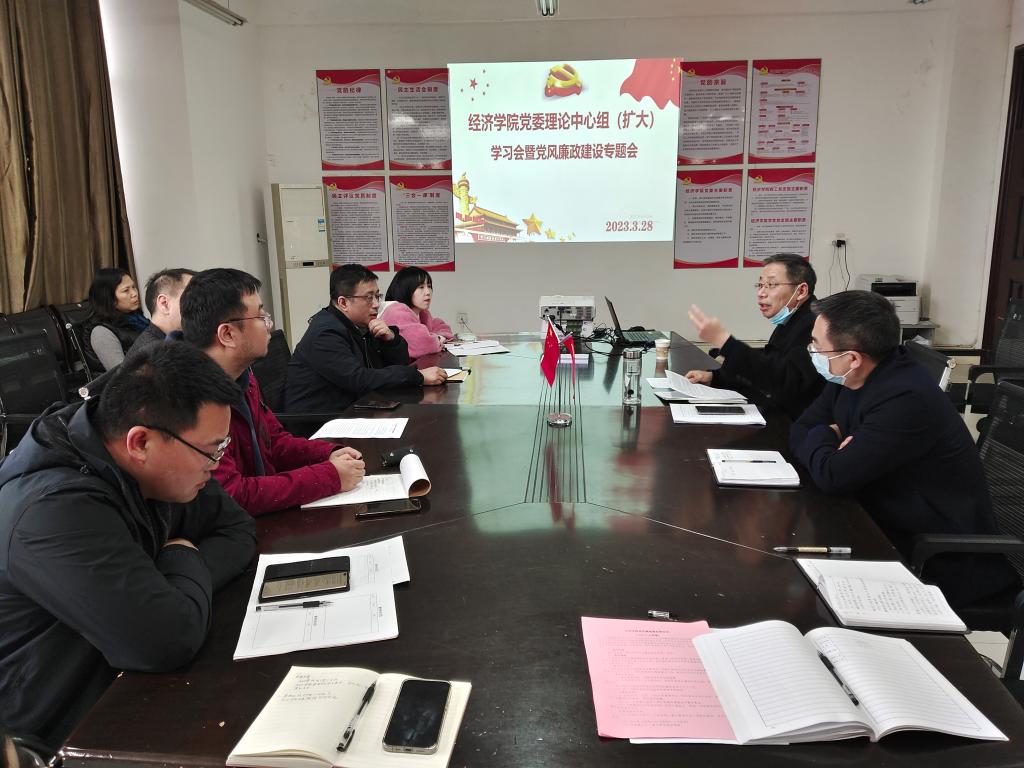 3月28日下午,经济学院在义丰楼619室召开党委理论学习中心组暨党风廉政建设专题会议,学院党政班子成员、党支部书记、各科室负责人参加会议,会议由党委书记漆晗东主持。