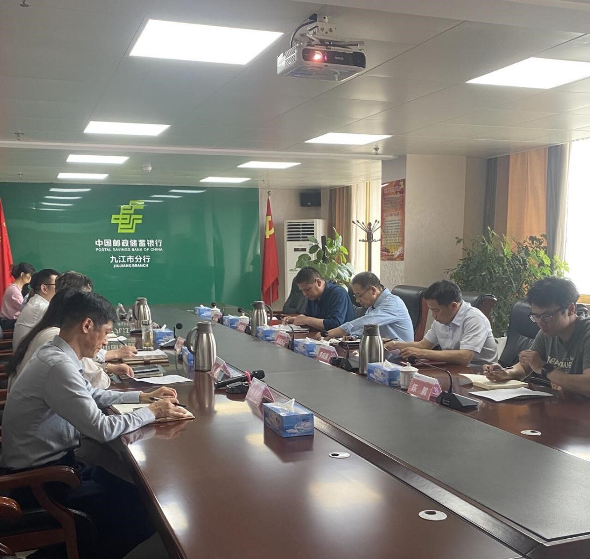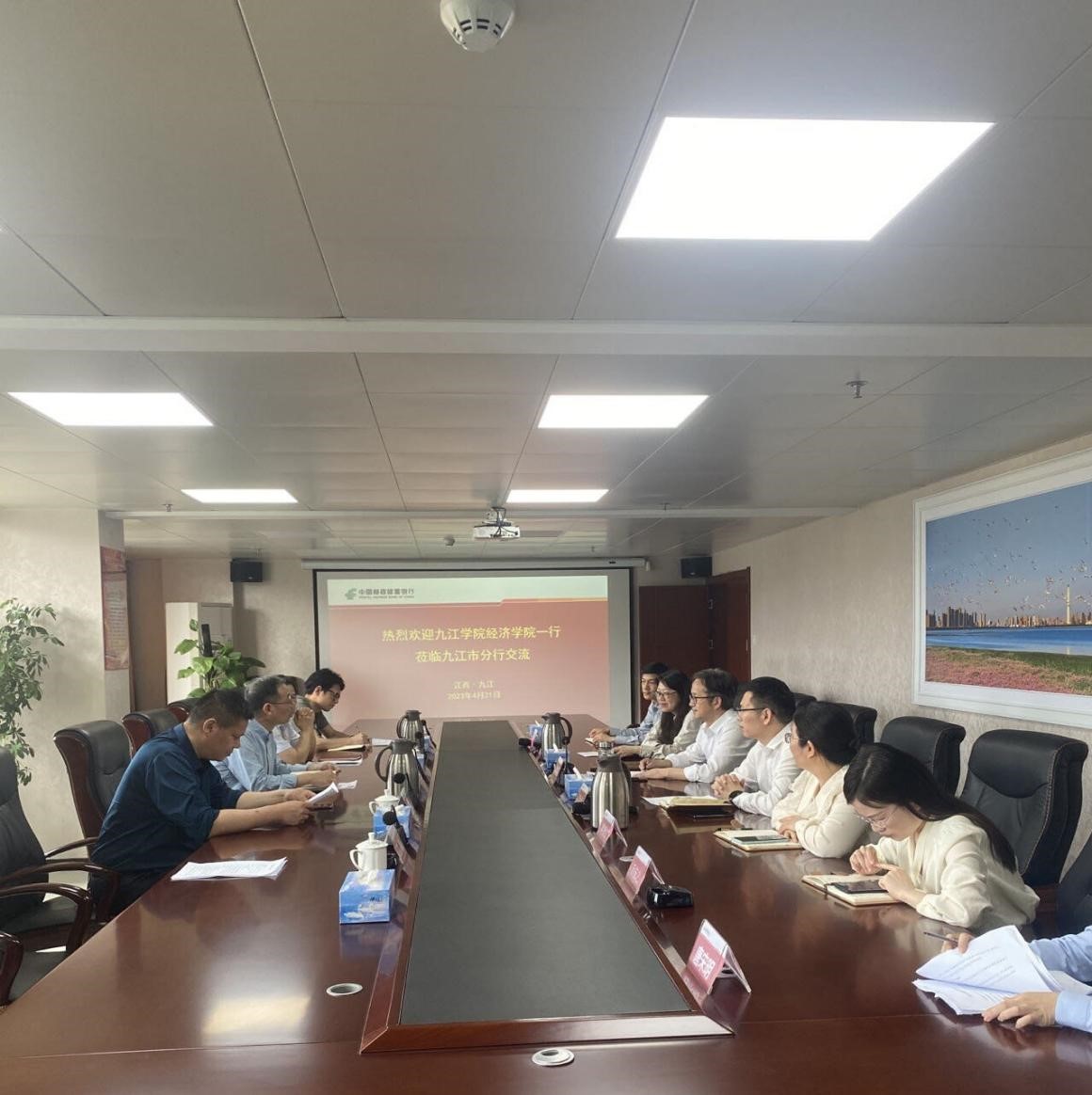 4月21日,jinnianhui金年会诚信至上党委书记漆晗东、金融学教研室主任李拔豪、实验室主任陈鹏等一行赴邮政储蓄银行九江分行开展“访企拓岗”专项行动,并就学生实习就业工作进行座谈。邮政储蓄银行九江市分行党委书记、行长徐洋远、副行长万为兵,以及各重点业务条线负责人参加了座谈。