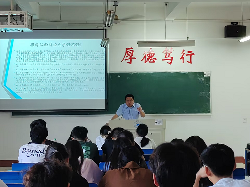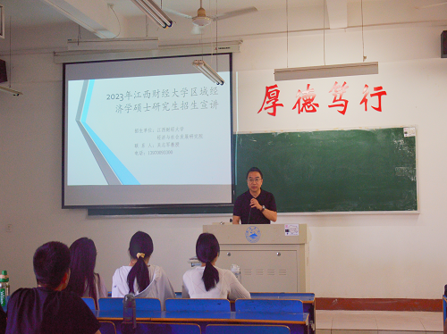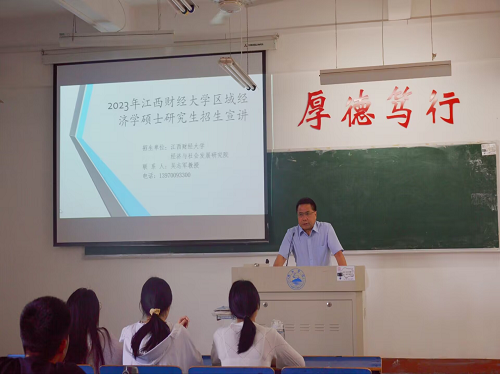 宣讲活动前,由李华副院长向大家介绍了本次活动主讲郭志军教授。活动中,郭志军教授向同学们介绍了当前的考研形势与就业形势和江西财经大学的考研情况和背景,并就其提出了为何要考研、考研压力、报考等一系列问题,鼓励广大立志考研的同学尽早做好考研规划。活动的最后,郭教授与同学们进行了互动问答,同时,成功考研上岸的何世玲同学也积极向同学们献出了自己的考研方法。