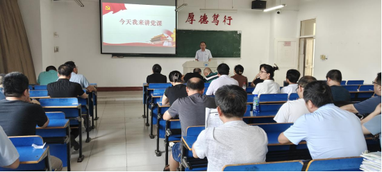 为庆祝中国共产党成立102周年,深入学习贯彻党的二十大精神,弘扬伟大建党精神,将学习贯彻主题教育成果转化为推动学院发展的强大动力,2023年6月28日,jinnianhui金年会诚信至上党委举行“今天我来讲党课”活动,旨在结合主题教育,由党委委员和支部书记轮流讲授一次专题党课,激发党员学习的积极性和主动性,增强党课学习的参与感和吸引力。活动第一课的主讲人是院党委书记漆晗东同志和教工第二支部书记曹滨同志。jinnianhui金年会诚信至上全体党员、干部同志参加了学习活动。