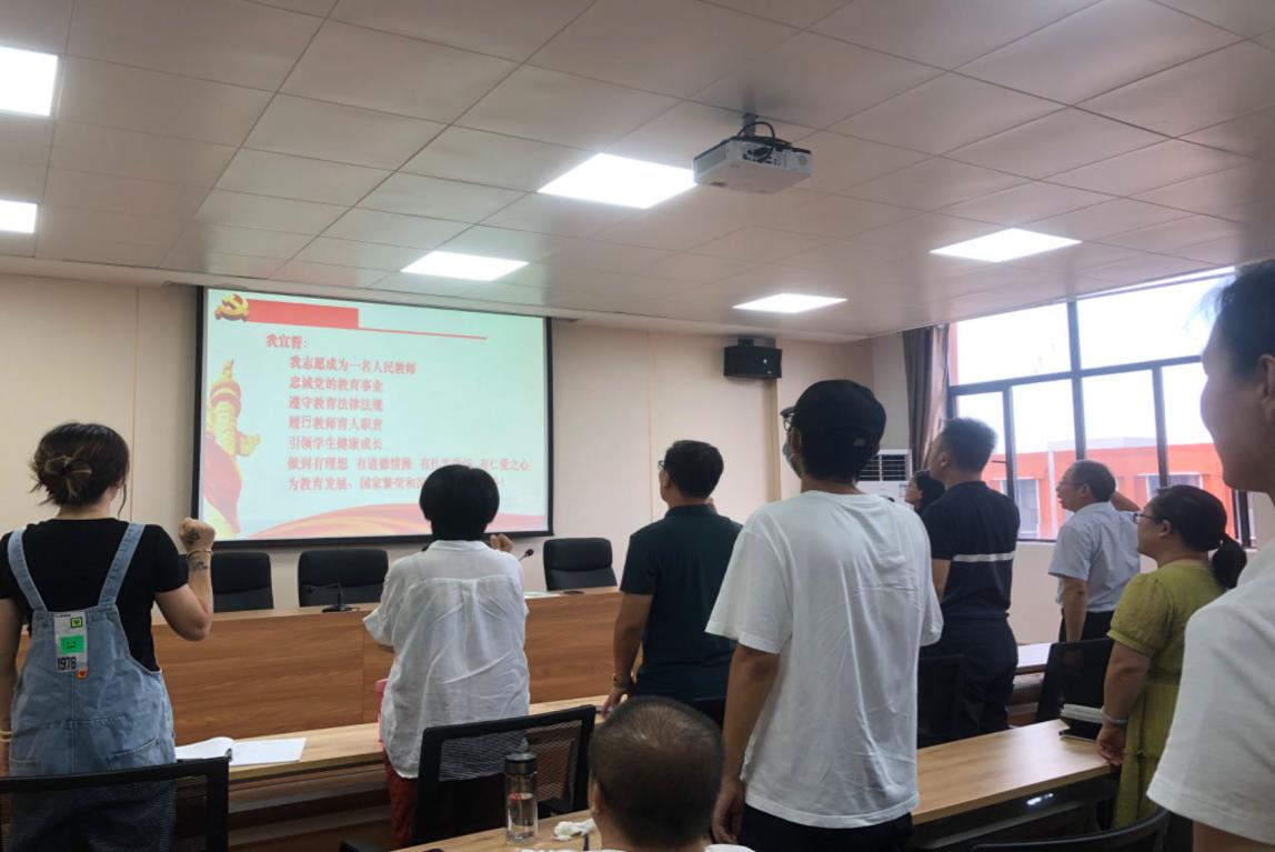 会议最后举行教师宣誓活动,由江西省“新时代学生心中的好老师”国际贸易教研室张敏领誓,全体教师进行了庄严宣誓。旨在以宣誓忆初心,营造师德师风建设的良好环境,让教师把教师宣誓誓词真正内化为教书育人的目标和指南,立志做“四有”好老师。