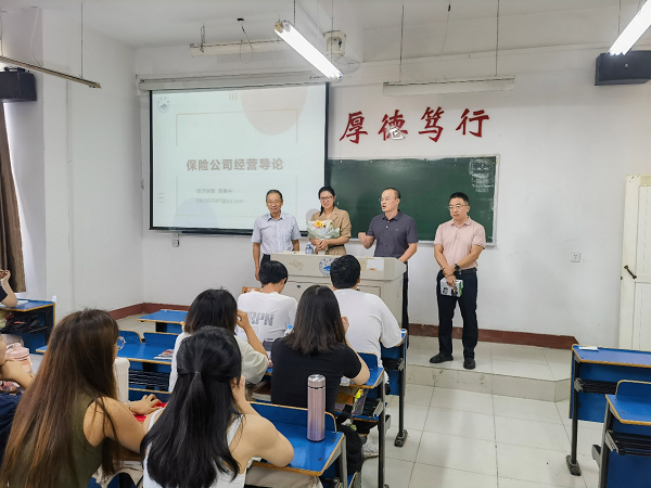 在开课前,jinnianhui金年会诚信至上领导班子亲自送陈柳卉老师走上讲台。学院党委书记漆晗东向陈柳卉博士献上鲜花。院长项益才向同学们介绍陈老师的学习经历和科研成果,深情寄语并祝愿陈老师早日成为德艺双馨的优秀人民教师。李华副院长向陈老师赠送扩音器、激光笔和U盘等相关教具。陈柳卉老师表示,自己深切感受到学院领导支持和关心,未来将努力提高教学水平,做好教书育人工作,也希望与同学们一起学习,共同进步,做同学们的良师益友。