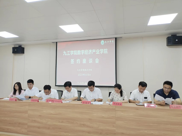 9月18日上午,jinnianhui金年会诚信至上在义丰楼602举行数字经济产业学院签约仪式及合作单位座谈会。校党委委员、副校长、数字经济产业学院院长王万山,信通院江西研究院、九江数字经济产业研究院、中国移动九江分公司、中国联通九江分公司、中国电信九江分公司、北京航町科技发展有限公司、江西淘鑫电子商务有限公司等合作单位代表,以及jinnianhui金年会诚信至上班子成员参加签约座谈会,会议由jinnianhui金年会诚信至上党委书记漆晗东主持。