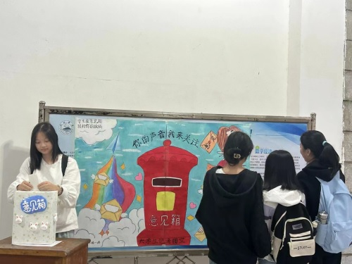 学生可以将自己生活学习中遇到的困难,希望在课余添加的活动以及发现校园环境,基础设施等问题,写在纸上,投入意见箱中。对于学生提出的意见并及时将来信送达学院,对实名提出的意见一个月内向反映人反馈有关处理情况,对匿名反映的情况也将在适当的场合予以反馈。
