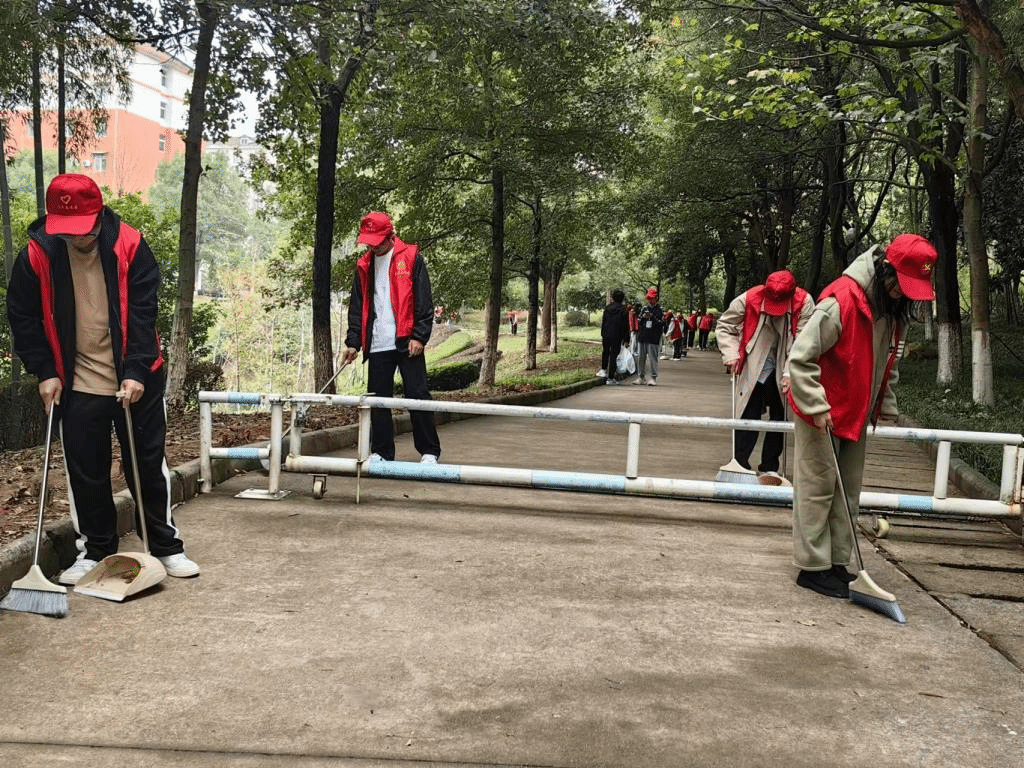 为推进金年会官网资助育人工作的开展,培养学生的感恩意识,jinnianhui金年会诚信至上于2023年11月8日下午组织受助学生进行义务打扫校园活动,地点为西门莲池附近道路。