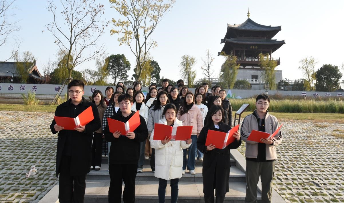然后,大家来到了长江国家文化公园九江段,沿着总书记的足迹,在芦苇荡漾的公园绿道亲水观江,深刻领悟总书记“要从人与自然和谐共生的生命共同体出发,着眼中华民族永续发展,把长江保护好”的重要指示,牢记“要把长江文化保护好、传承好、弘扬好,延续历史文脉,坚定文化自信”的殷殷嘱托。随后,全体学生党员在琵琶亭下发出“请党放心,强国有我”的铮铮誓言,激昂的声调,坚定的眼神充满了信心与力量,表达了对党和国家的忠诚与热爱。