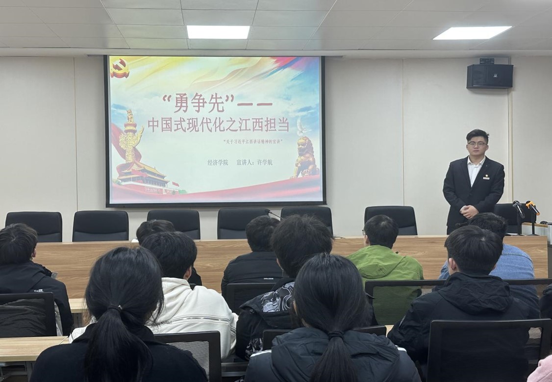为学习贯彻习近平总书记考察江西讲话精神,发挥理论宣讲理论武装和凝聚人心的积极作用,推动党的创新理论和路线方针深入人心。12月14日晚,jinnianhui金年会诚信至上大学生理论宣讲团开展习近平总书记考察江西重要讲话精神主题宣讲。