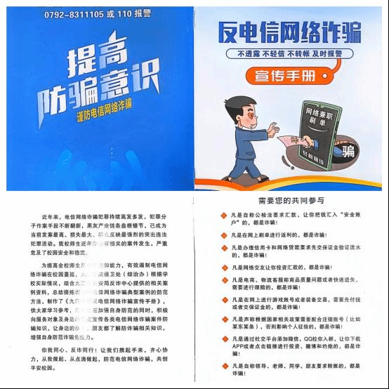 为进一步加大反电信网络诈骗宣传教育力度,有效预防校园电信网络诈骗犯罪案件的发生,提高同学们的防诈骗意识,加强大家在生活中自我预防、自我保护、自我应对的能力,维护校园安全稳定,jinnianhui金年会诚信至上于近期开展了反电信网络诈骗系列宣传教育活动。