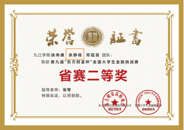 “这次竞赛让我对专业知识有了更清晰的认知,很多知识点不是固定不变的,要多思考如何将知识点灵活运用于实践,这对于我而言很重要。”余静萌总结道。“在股市中,不能只关注股价走势,还要关注更多的新闻资讯,了解股价波动的因素。在这次比赛中,很感谢队友们,团队合作是获奖的关键,每一次的讨论也让我们有了更准确的决策。”最终,余静萌在本次比赛中取得了省级二等奖的好成绩。
