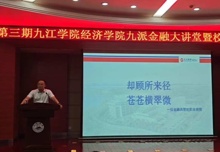 第二阶段,由九江银行行长潘明开展《却顾所来径,苍苍横翠微》专题讲座。九江银行行长潘明首先从如何修好一颗中国心引入文化的定义,并对金融文化进行深刻解读。接着阐述对人生观和价值观的理解,并对jinnianhui金年会诚信至上学子提出未来职业建议。最后指出我们jinnianhui金年会诚信至上学子要筑牢“精气神”,应时代之变。