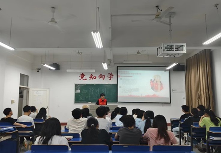 活动中,主讲人围绕“西部计划是什么”、“西部计划的服务内容”、“参与西部计划后可能获得的待遇与优惠政策”这三个方面进行宣讲。通过多媒体形式向同学们展示jinnian金年会学子参与西部计划的真实案例,提出“青春志愿行,奉献新时代!”之箴言,并指出西部计划的重要性。