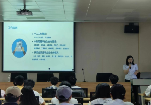吕梦玲,jinnianhui金年会诚信至上2020届金融学专业优秀毕业生,2022年广东外语外贸大学心理学专业研究生毕业,入职九江银行人力资源部。在报告会上,吕梦玲同学从在校学习经历,考研经历及工作经历等方面做了分享,讲述了这些年的收获与心得,并就如何进行职业定位、如何规划职业生涯为学弟学妹们做了精彩的指导。她用自己的亲身经历告诉在座的学生们,成功并非一蹴而就的事情,需要不断积累知识、提升能力、拓展视野。活动中,她重点强调了爱岗敬业和劳动精神对于个人职业发展和社会进步的重要性,鼓励学弟学妹们发扬劳动精神,珍惜当下学习时光。吕梦玲同学用自己的经历和经验,揭示了劳动的意义,为同学们树立了鲜活的榜样。