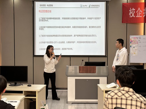 《商业银行业务与经营》是金年会官网首批校企合作立项共建课程,由金年会官网课程团队与邮储银行九江支行实务专家团队共同建设。本次课采取校银双方双师同堂的方式完成。