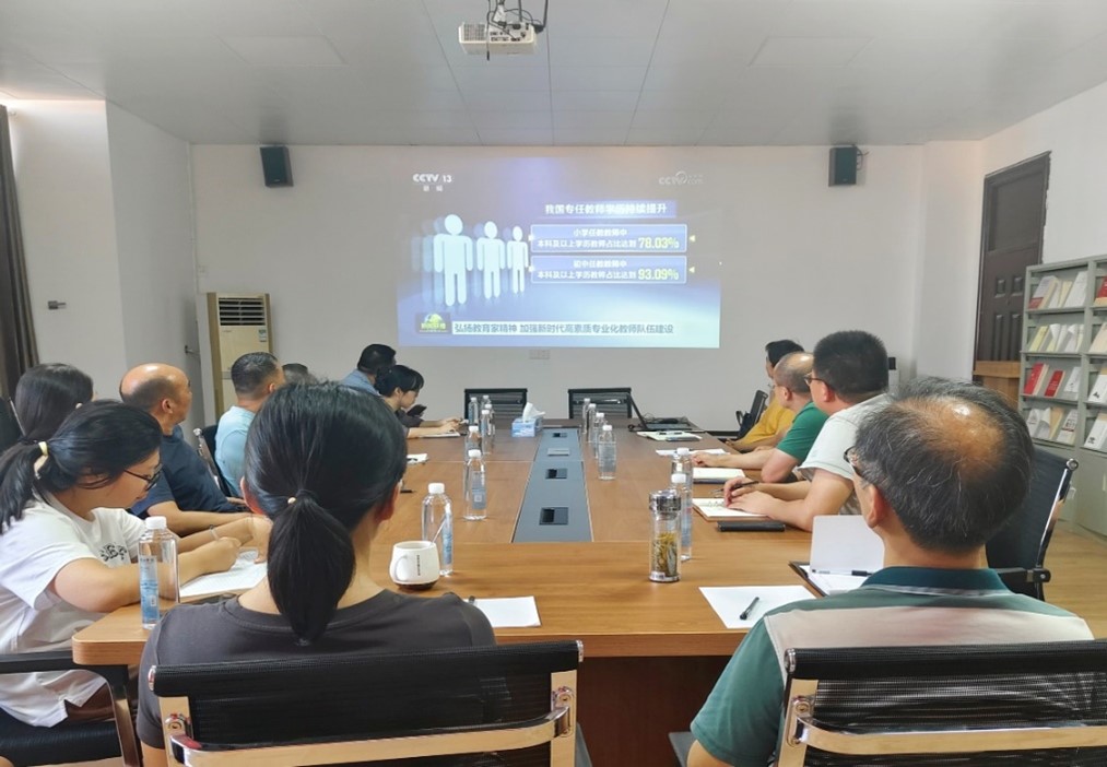 参会人员以“大力弘扬教育家精神,加快建设教育强国”为主题,并围绕主题进行了深入的交流和探讨。会议伊始,与会同志共同观看教育短片、学习教育家精神。党委书记漆晗东指出教育家精神能够铸魂强师,并强调作为一名教育工作者要立德、立言、立行,将教育初心践行到底!