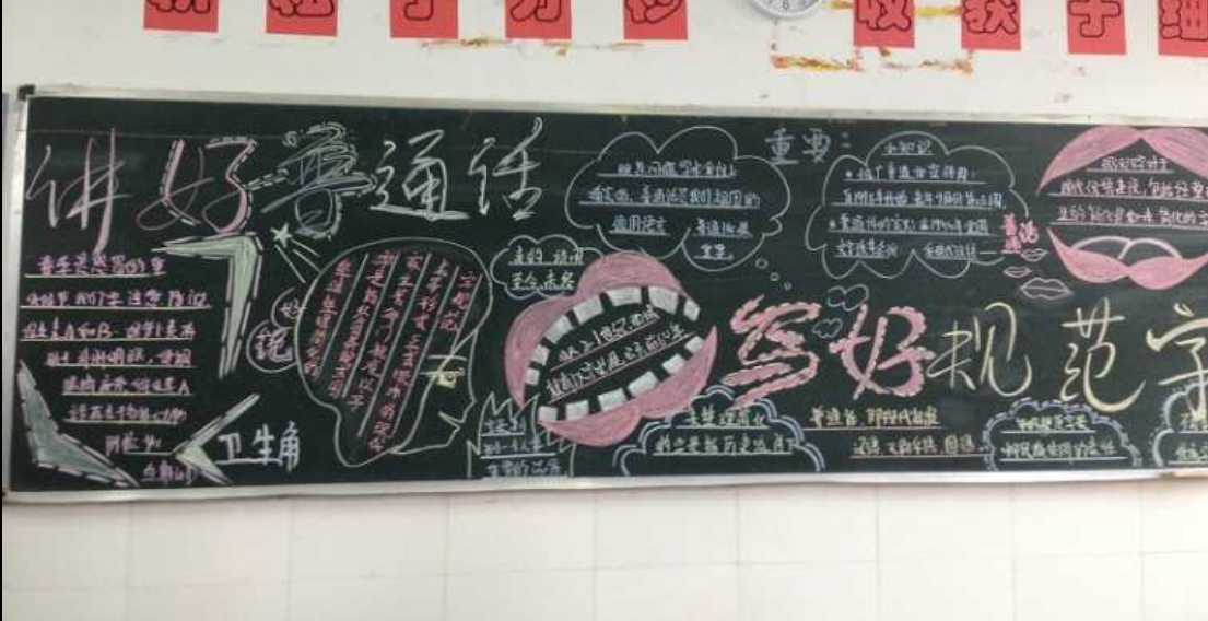 此外,jinnianhui金年会诚信至上的同学们还充分发挥自己的创意和才华,精心绘制了以推广普通话为主题的黑板报。黑板报内容丰富,色彩鲜艳,不仅有普通话的宣传标语和知识要点,还有生动的图画和形象的比喻,吸引了众多师生的关注。这不仅为校园增添了一道亮丽的风景线,也进一步营造了浓厚的普通话学习氛围。