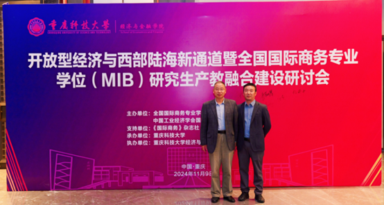2024年11月8日至10日,由全国国际商务专业学位研究生教育指导委员会(简称“全国MIB教指委”)、中国工业经济学会国际市场与投资专委会主办,《国际商务》杂志支持,重庆科技大学承办的“开放型经济与西部陆海新通道暨国际商务专业学位研究生产教融合建设研讨会”在重庆召开。来自全国80多所高校的近200名专家学者参加会议。