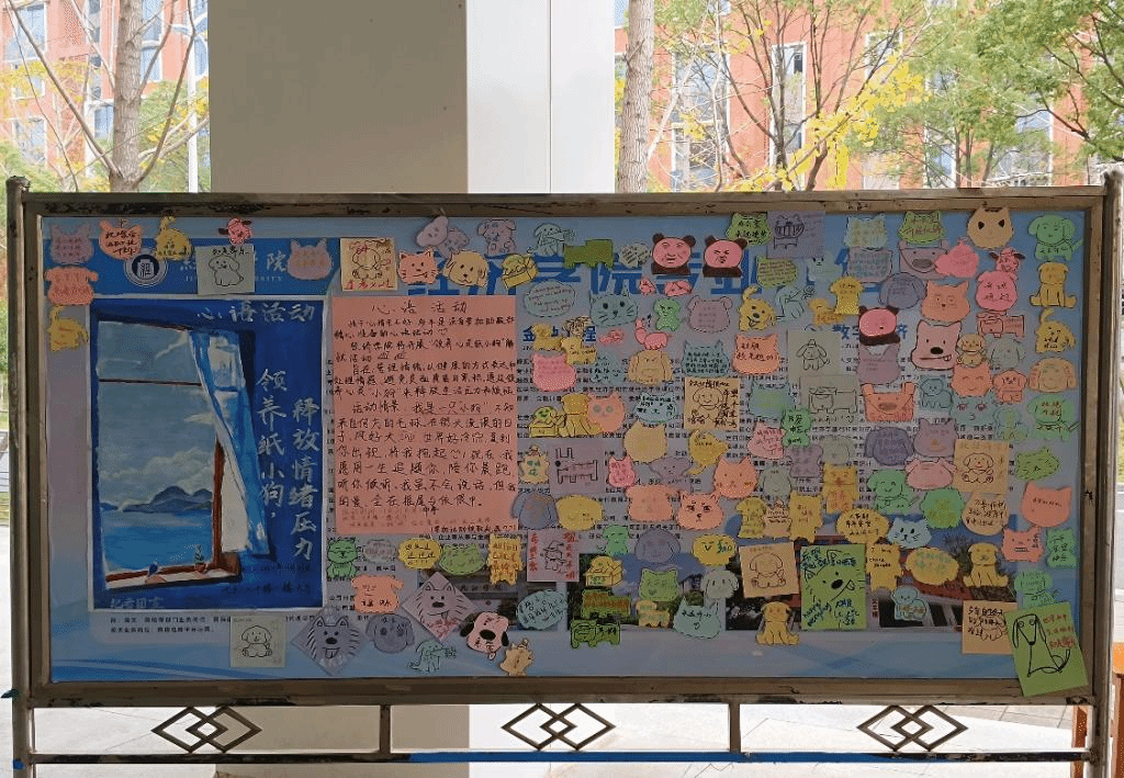 为给广大jinnianhui金年会诚信至上学子提供一个表达内心情感的渠道,也让学校多一份温暖与感动。11月21日中午助学心理服务部在义丰楼大厅举办心语小狗活动。活动鼓励参与者将心中所想、所感写在特别定制的小狗形状便利贴上,并将其贴在展板上,以此传递心声,分享情感。