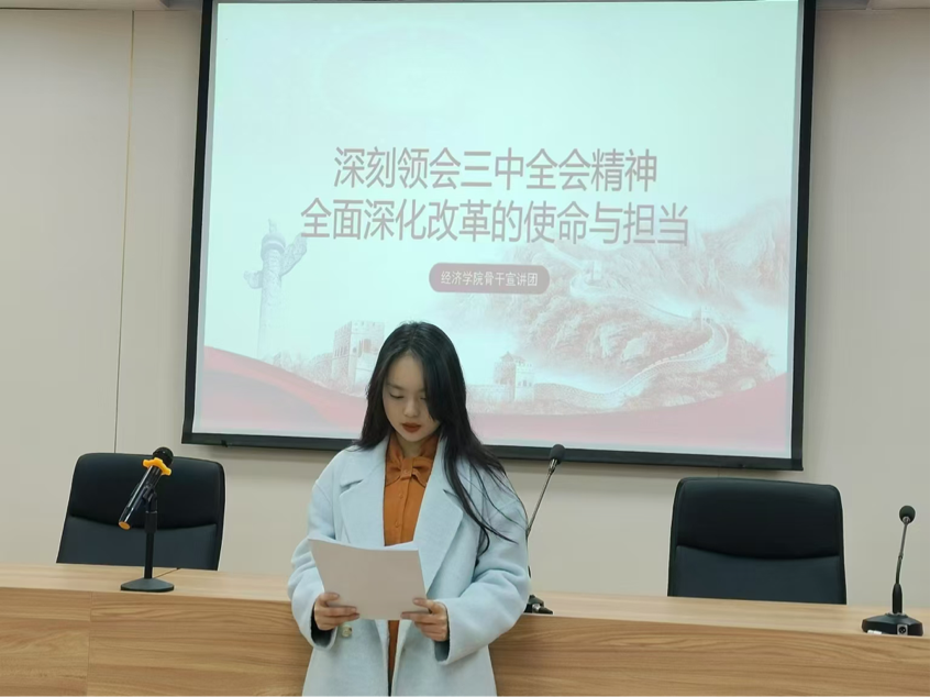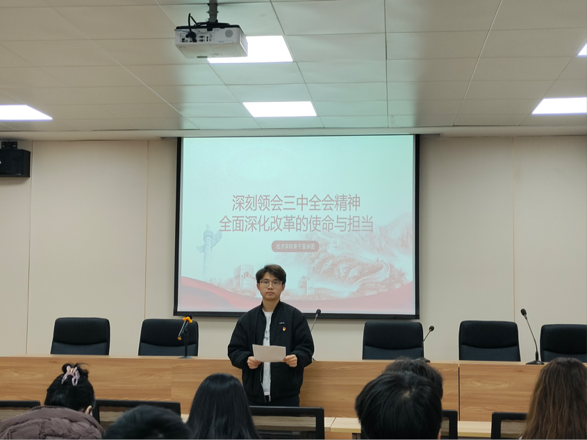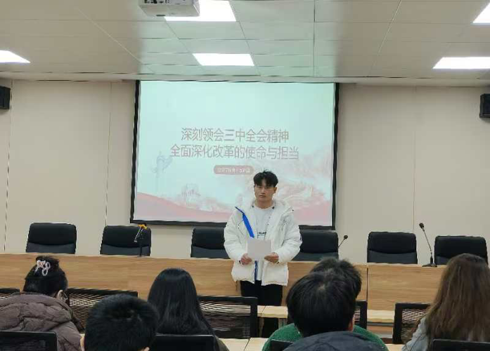 为深入基层团支部,引导青年学子深刻理解全面深化改革的使命担当。十一月初,jinnianhui金年会诚信至上于义丰楼六楼会议室组织开展了主题宣讲活动。此次活动由jinnianhui金年会诚信至上骨干宣讲团的高子奇、熊磊、胡雪晴担任主讲,于各个团支部开展。