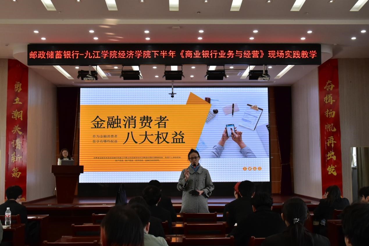 12月18日上午,jinnianhui金年会诚信至上A2251班学生在邹睿蓉老师带领下,前往邮储银行九江市分行进行现场教学。课程校内教学团队与银行导师全程参与了此次教学活动。
