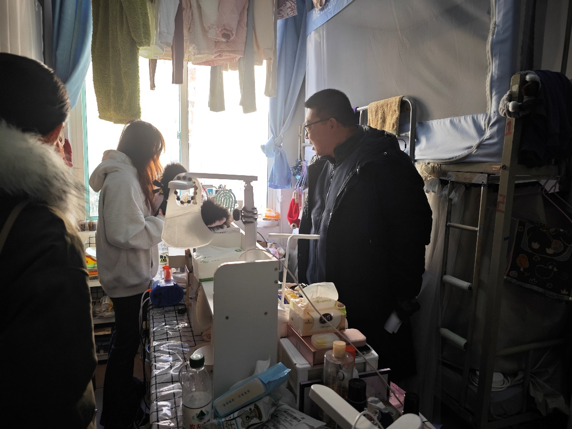 随后,辅导员们还对寝室卫生、物品摆放等方面进行了检查,督促同学们保持良好的宿舍环境和个人卫生习惯。并针对冬季的防火、防盗、防诈骗等安全事项对同学们进行了耐心叮嘱,强化学生的安全防范意识。