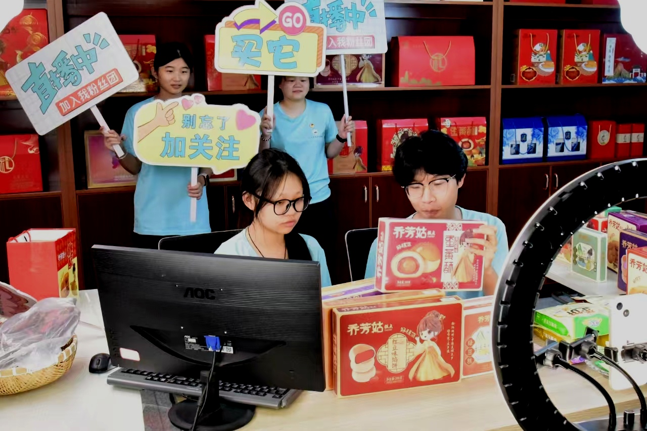 湖口县流芳乡的当地特色美味在直播期间轮番登场。有流芳乡“乔芳姑”系列糕点蛋黄酥和馅饼等,还有独具本土风味的流芳茶饼。jinnianhui金年会诚信至上“三下乡”社会实践队的志愿者们先通过镜头生动呈现产品诱人的色泽与风味,待观众直观感受到美食魅力后,再深入介绍食材溯源和制作工序。通过这次直播活动,小镇特色好物走向了更广阔的市场。