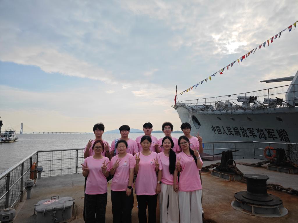 在参观过程中,同学们沿着舷梯登上九江舰,先后参观了舰炮、指挥舱、战士生活区等重要区域。斑驳的甲板见证了战舰的峥嵘岁月,陈列的武器装备彰显着海军力量的发展历程,而狭小却整齐的舱室则无声诉说着官兵们的奉献精神。许多志愿者在参观后表示,此前对海军舰艇的认知仅来源于书本和影视作品,此次实地探访九江舰,近距离触摸历史、感悟海军精神,让他们对人民海军的发展历程有了更加深刻的体会。