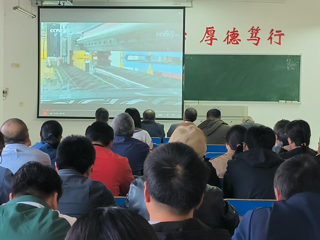 会上,通过集体观看16日晚《新闻联播》,让全体教师重温党的二十大开幕盛况,了解党的党的二十大盛会实况和重要内容,学习党的二十大主要精神。集体观看《创新中国》大型记录片第三集《制造》,该片讲述的是“现在是中国制造的关键时期,无数的中国企业已经开始行动;从可弯折的超薄玻璃到新型的装配式建筑,从国产大客机的诞生到控制精度达3微米的机床,从世界最高的臂架泵车到个性化的3D打印。这是一场强者的角逐,谁抢得先机,便获得未来。创新,引领人们一步步塑造着中国制造的新面貌。”