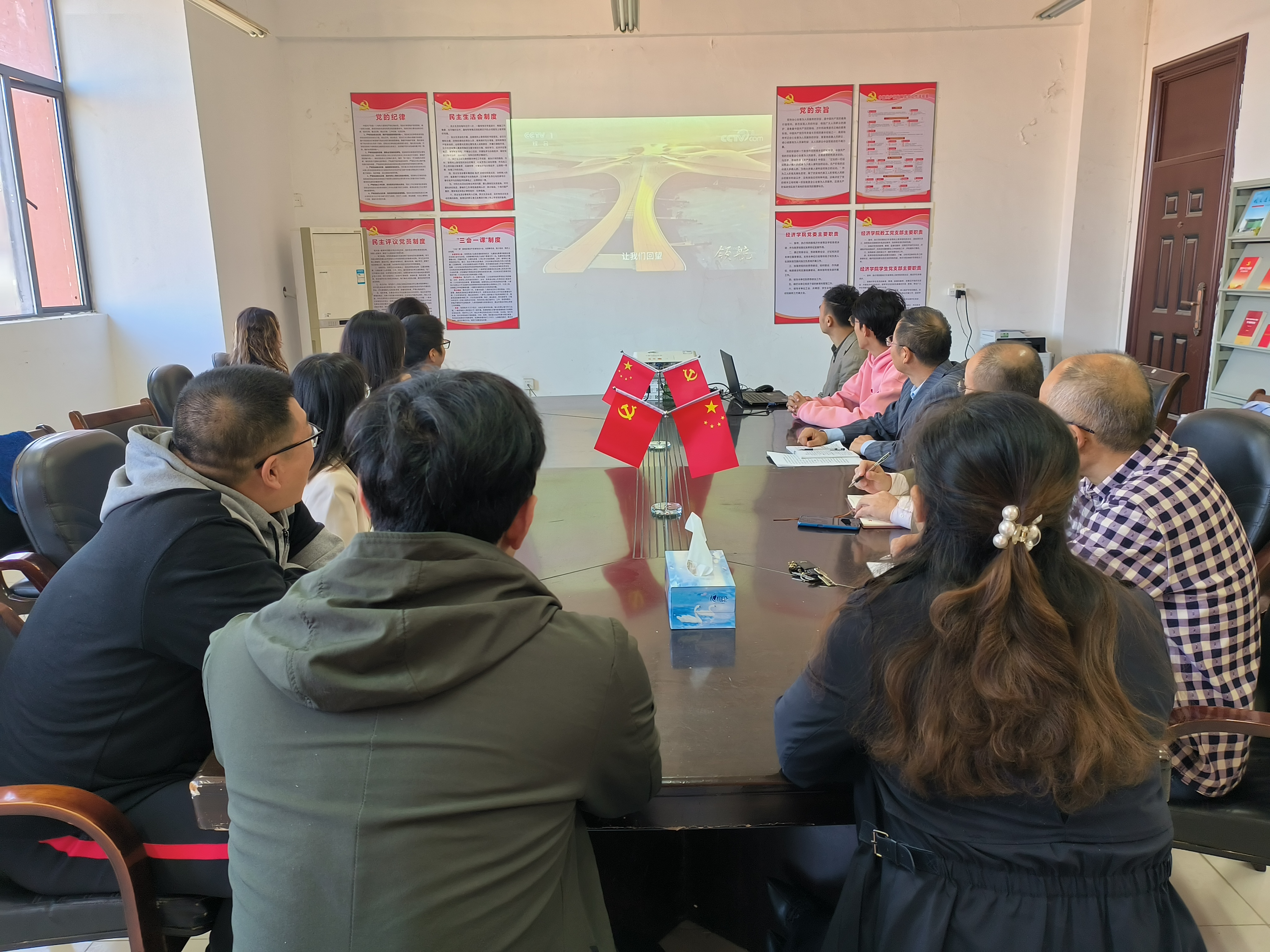 jinnianhui金年会诚信至上积极组织开展“喜迎二十大 奋进新征程”学习宣传活动,10月12日上午,组织党员干部在义丰楼619集中观看大型电视专题片《领航》第一集《掌舵远航》和第二集《科学指南》。