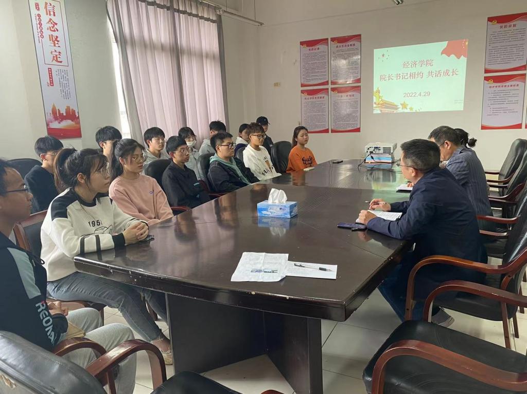 为了解决学生在学习、生活中遇到的困惑,掌握动态,疏通学生负面情绪,提升学生的幸福感和自信,4月29号下午,学院举行“院长书记有约”活动,jinnianhui金年会诚信至上党委书记漆晗东、副院长李华、资助负责人丁春老师及各年级学生代表参加活动,会议由jinnianhui金年会诚信至上学生科副科长郎少杰主持。