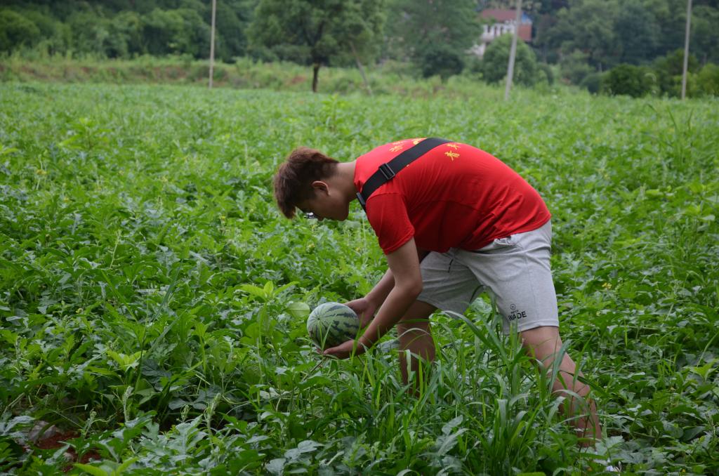 甘露镇前山村近几年在乡村振兴上位于江西省前列.具甘露镇陈静波镇长介绍,该村近年来主要发展农产品,将村里的荒地、闲置地变成了果园,花园,‘沉睡’的土地被搅活了,脱贫增收渠道拓宽了许多,从村到户人人受益。”在讲解员的带领下我们来到了西瓜种植园,学习了瓜苗种植的知识,并下地体验。随后,我们来到了莲藕种植基地同时也学习了莲藕的种植技巧。人生在勤,不索何获,我们在劳动中收获了快乐,丰富了知识。