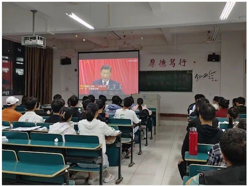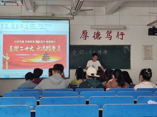 活动中,主讲人组织了同学们观看了党的二十大开幕式,习近平总书记的报告令人振奋。接着,主讲人通过PPT认真讲解了党的二十大精神,并就此谈及党的二十大对青年学生提出的更高要求,要努力贯彻党的二十大精神的时代任务,以党的二十大精神武装头脑、指导实践。最后,呼吁各班同学积极宣传党的二十大精神,为加强同学们政治素质修养提供强劲引擎。同学们纷纷表示会坚持贯彻二十大精神,为社会主义事业奋斗终身。