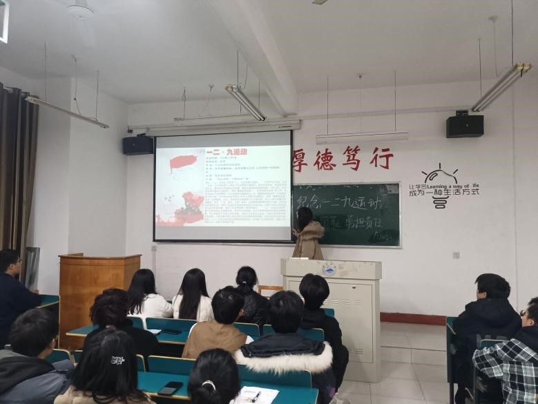 为弘扬革命精神,提高青年学生的责任意识,12月8日晚,jinnianhui金年会诚信至上于义丰楼组织开展了以“一二九运动”为主题的班会。本次主题班会活动由各班团支书主讲,jinnianhui金年会诚信至上部分学生参加。