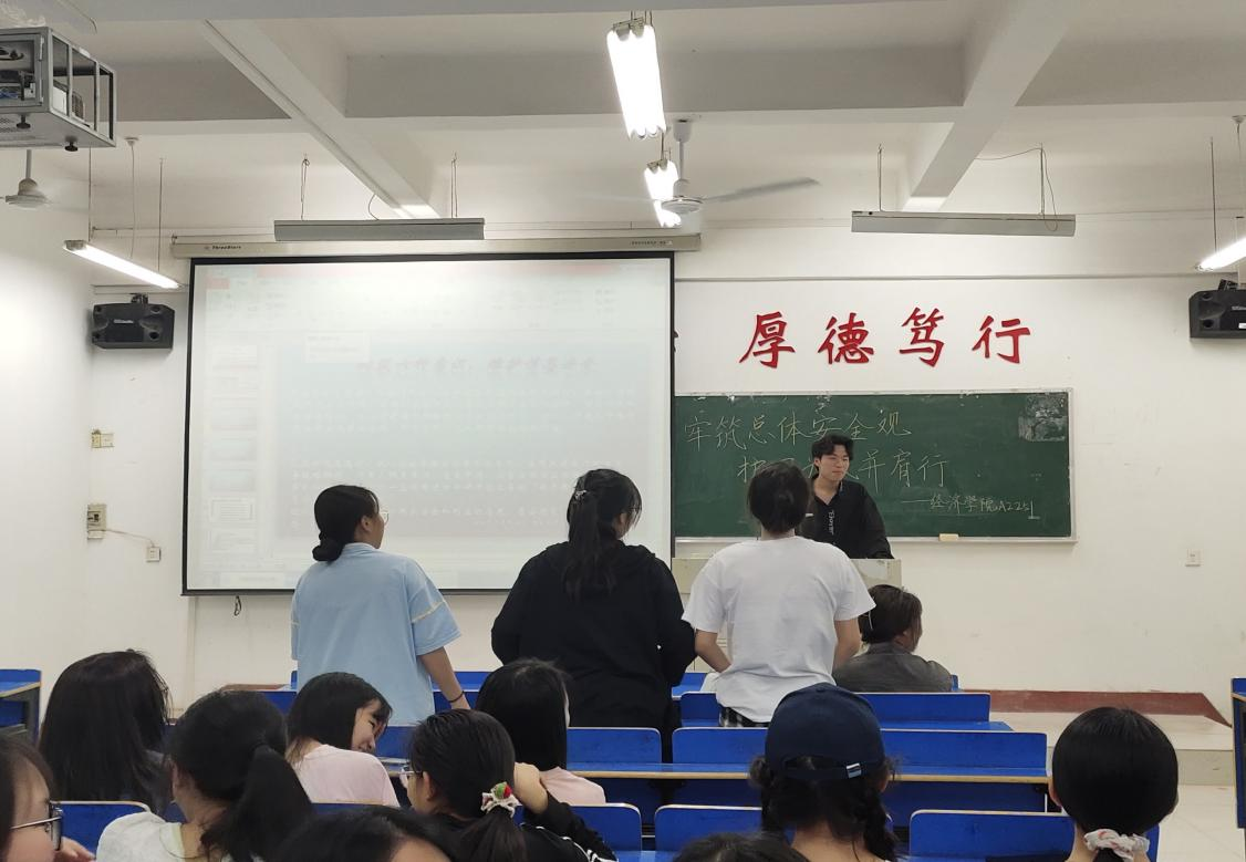 活动上,主讲人首先向同学们普及国家安全相关知识,学习宣传《中华人民共和国国家安全法》等法规制度有关内容,紧接着,主持人通过趣味问答的方式,带动同学们积极参与讨论。最后,运用真实案例清晰直观地向同学们讲解了当代大学生应如何增强忧患意识,做到居安思危,用实际行动维护国家安全,让大家深刻认识到国家安全和我们每个人的生活息息相关。